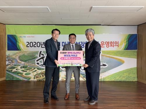 [½Åµ¿¾Æ¹æ¼Û=±è¿ëÈÆ ±âÀÚ] ¼øÃµ½Ã ÁÖ¾Ï¸é ¹®±æ¸®¿¡ À§Ä¡Çϰí ÀÖ´Â ÆÄÀÎÈú½º °ñÇÁ&È£ÅÚ¿¡¼­´Â Áö³­ 20ÀÏ Á־ϸé ÇàÁ¤º¹Áö¼¾Å͸¦ ¹æ¹®ÇØ ¾î·Á¿î ÀÌ¿ôÀ» µ½´Âµ¥ »ç¿ëÇØ ´Þ¶ó¸ç ¼º±Ý 5¹é¸¸¿øÀ» Àü´ÞÇß´Ù. ÆÄÀÎÈú½º °ñÇÁ&È£ÅÚÀº ¾î·Á¿î Áö¿ª ÁÖ¹ÎÀ» µ½´Â ÀÏ¿¡ µ¿ÂüÇϰíÀÚ ¡¦