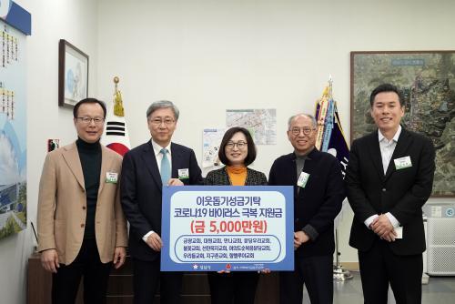 [½Åµ¿¾Æ¹æ¼Û= ¹Ú´ë¿µ ±âÀÚ] ¼º³² ¼ÒÀç ¸¸³ª±³È¸ µî Áö¿ª 10°÷ ±³È¸°¡ 2¿ù 27ÀÏ ¿ÀÈÄ 3½Ã 30ºÐ ¼º³²½ÃÀå Áý¹«½ÇÀ» ¹æ¹®ÇØ Äڷγª19 ÅðÄ¡¿¡ ½á´Þ¶ó¸ç ¼º±Ý 5000¸¸¿øÀ» ±âŹÇß´Ù. Äڷγª19 »çŰ¡ Àå±âÈ­ÇÔ¿¡ µû¶ó Á¶±ÝÀÌ¶óµµ º¸ÅÆÀÌ µÇ°íÀÚ ¶æÀ» ¸ð¾Æ ¼º±ÝÀ» ±âŹÇÏ°Ô ¡¦