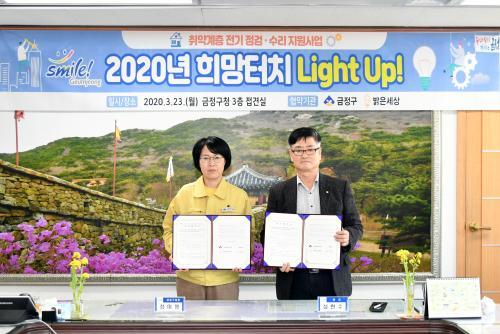 [½Åµ¿¾Æ¹æ¼Û=º¯ÀçÈ£ ±âÀÚ] ºÎ»ê ±ÝÁ¤±¸(±¸Ã»Àå Á¤¹Ì¿µ)´Â Áö³­ 23ÀÏ Àç´É±âºÎ ¾÷üÀÎ ¹àÀº¼¼»ó(´ëÇ¥ ½ÉÇå¼ö)°ú ¾÷¹«Çù¾àÀ» ü°áÇϰí, ¿À´Â 4¿ùºÎÅÍ 12¿ù±îÁö Àü±â¾ÈÀü»ç°í¿¡ Ãë¾àÇÑ Àú¼Òµæ Ãë¾à°èÃþ 40°¡±¸¸¦ ´ë»óÀ¸·Î Àü±â Á¡°Ë¡¤¼ö¸®¸¦ Áö¿øÇÏ´Â ¡®Èñ¸ÁÅÍÄ¡ Light Up!¡¦