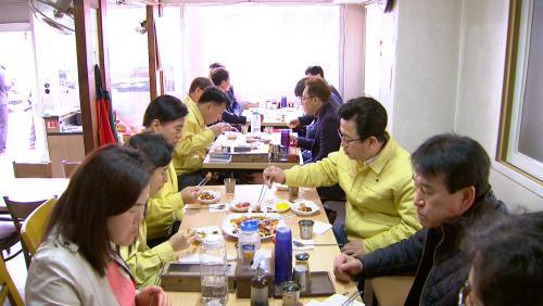 [½Åµ¿¾Æ¹æ¼Û=Áö¿ì¿­ ±âÀÚ]ÇãÅÂÁ¤ ´ëÀü½ÃÀåÀÌ Äڷγª19·Î ¾î·Á¿òÀ» °Þ°í ÀÖ´Â ¼Ò»ó°øÀÎÀ» Á÷Á¢ ã¾Æ°¡ ¾÷ÁÖ¸¦ °Ý·ÁÇß´Ù. Çã ½ÃÀåÀº ȲÀÎÈ£ µ¿±¸Ã»Àå, ½Ã °£ºÎµé°ú ÇÔ²² ´ëÀü 1¹ø È®ÁøÀÚ°¡ ´Ù³à°£ µ¿±¸ Àھ絿 ¼ÕÀ̰¡ Â¥Àå ÁßÈ­¿ä¸® À½½ÄÁ¡À» ã¾Æ°¡ Á¡½É½Ä»ç¸¦ ÇÔ²² Çß´Ù¡¦