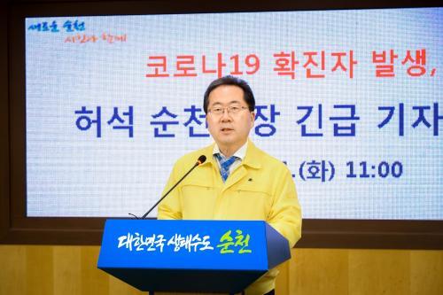 [½Åµ¿¾Æ¹æ¼Û=±è¿ëÈÆ ±âÀÚ] ¼øÃµ½Ã´Â, 31ÀÏ ±âÀÚȸ°ßÀ» °®°í Äڷγª19 µÎ ¹øÂ° È®ÁøÀÚ°¡ ¹ß»ýÇß´Ù°í ¹àÇû´Ù. Çã¼® ¼øÃµ½ÃÀåÀº ±ä±Þ ±âÀÚȸ°ßÀ» ÅëÇØ ¿µ±¹¿¡¼­ ÆÄ°ß ±Ù¹«Áß ±Í±¹ÇÑ 43¼¼ ³²¼º A¾¾°¡ Àü³²È¯°æº¸°Ç¿¬±¸¿øÀÇ °Ë»ç¿¡¼­ È®ÁøÀ¸·Î Å뺸¹Þ¾Ò´Ù°í ÀüÇß´Ù. A¡¦