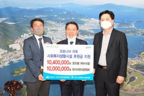 [½Åµ¿¾Æ¹æ¼Û=±è±â³² ±âÀÚ] ±Ç¿ÀºÀ ¿©¼ö½ÃÀå°ú ¿©¼ö½Ã ¾î¸°ÀÌÁý¿¬ÇÕȸ(ȸÀå ÃֹαÔ)´Â Äڷγª19 ±Øº¹À» À§ÇØ 1ÀÏ ¿ÀÈÄ ½ÃÀå½Ç¿¡¼­ ¿©¼ö½Ã »çȸº¹Áö½Ã¼³¿¬ÇÕȸ(ȸÀå ±èÁø¿ì)¿¡ ÈÄ¿ø±Ý Àü´Þ½ÄÀ» °¡Á³´Ù. ¿©¼ö½Ã¿¡ µû¸£¸é ±Ç¿ÀºÀ ¿©¼ö½ÃÀåÀº ³Ë ´ÞÄ¡ ±Þ¿© 30%ÀÎ 1,040¸¸¡¦