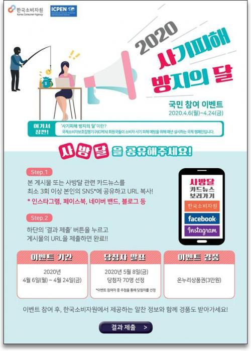 [½Åµ¿¾Æ¹æ¼Û=¹Ú´ë¿µ ±âÀÚ] Çѱ¹¼ÒºñÀÚ¿ø(¿øÀå ÀÌÈñ¼÷)Àº `»ç±âÇÇÇØ ¹æÁöÀÇ ´Þ(Fraud Prevention Month) ±¹Á¦ Ä·ÆäÀÎ'À» ½Ç½ÃÇÑ´Ù. `»ç±âÇÇÇØ ¹æÁöÀÇ ´Þ(Fraud Prevention Month) ±¹Á¦ Ä·ÆäÀÎ'Àº ±¹Á¦¼ÒºñÀÚº¸È£ÁýÇà±â±¸(ICPEN)°¡ »ç±â¤ý±â¸¸¼º °Å·¡·Î ¹ß»ýÇÏ´Â ¼ÒºñÀÚ¡¦