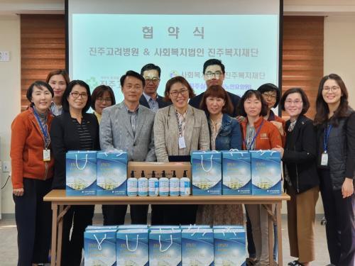 [½Åµ¿¾Æ¹æ¼Û=±è´ë¿ø ±âÀÚ] ÁøÁÖº¹ÁöÀç´Ü ÁøÁֽǹö¼¾ÅÍ/³ª´©¸®³ëÀÎÅëÇÕÁö¿ø¼¾ÅÍ(¿øÀå ±è±âÈ£) ´ëÇ¥ÇÏ¿© ¿À´Ã ¿ÀÈÄ ÁøÁÖ°í·Áº´¿ø°ú »çȸº¹Áö¹ýÀÎ ÁøÁÖº¹ÁöÀç´ÜÀÇ ¾÷¹« Çù¾à½Ä ¹× ±âºÎ(¸¶½ºÅ© 2,000¸Å¿Í 500ml¼Õ¼Òµ¶Á¦ 100º´)°¡ ÀÖ¾ú´Ù°í ¸»Çß´Ù. ÁøÁÖ°í·Áº´¿ø(¿øÀå ¹®º´¡¦