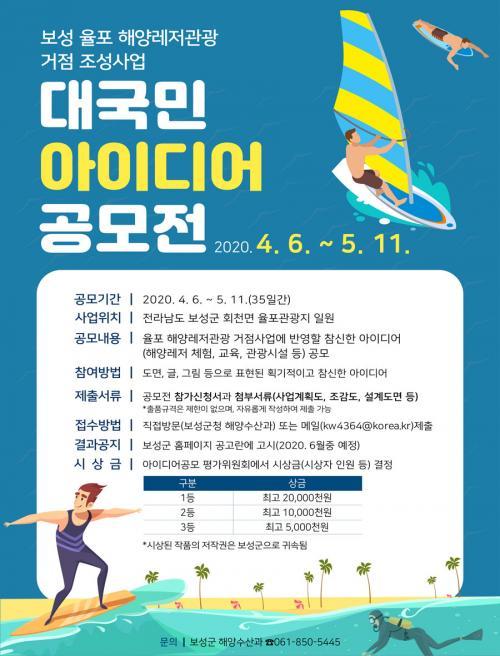 [½Åµ¿¾Æ¹æ¼Û=¹Ú±¤¿Á ±âÀÚ] º¸¼º±ºÀº ¿À´Â 5¿ù 11ÀϱîÁö Àü±¹¹ÎÀ» ´ë»óÀ¸·Î º¸¼º À²Æ÷ ÇØ¾ç·¹Àú°ü±¤ °ÅÁ¡ Á¶¼º »ç¾÷ ´ë±¹¹Î ¾ÆÀ̵ð¾î °ø¸ð¸¦ ½Ç½ÃÇÑ´Ù. º¸¼º±ºÀº Áö³­ÇØ 12¿ù ÇØ¾ç¼ö»êºÎ ÁÖ°ü ¡°2020³â ÇØ¾ç·¹Àú°ü±¤ °ÅÁ¡ °ø¸ð»ç¾÷¡±¿¡ ÃÖÁ¾ ¼±Á¤, ȸõ¸é À²Æ÷°ü±¤Áö¡¦