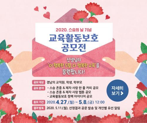 [½Åµ¿¾Æ¹æ¼Û=±è´ë¿ø ±âÀÚ] °æ»ó³²µµ±³À°Ã»(±³À°°¨ ¹ÚÁ¾ÈÆ)Àº 2020³â ½º½ÂÀÇ ³¯¿¡ ÁîÀ½ÇÏ¿© ¡®½º½ÂÁ¸°æ, Á¦ÀÚ»ç¶û¡¯ÀÇ ÇູÇÑ ±³À°È°µ¿ dzÅä Á¶¼ºÀ» À§ÇØ¡¸2020. ½º½ÂÀÇ ³¯ ±â³ä ±³À°È°µ¿º¸È£ Á¤Ã¥ °ø¸ðÀü¡¹À» °³ÃÖÇÑ´Ù. À̹ø °ø¸ðÀüÀº ¡°¼±»ý´ÔÀÇ ´õ ÇູÇÑ 5¿ù, ¡¦