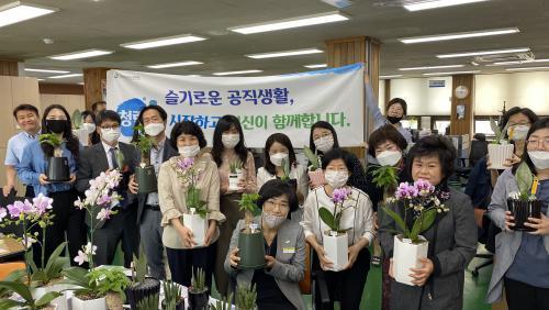[½Åµ¿¾Æ¹æ¼Û±¹=±è´ë¿ø ±âÀÚ] °æ»ó³²µµ ±³À°Ã»(±³À°°¨ ¹ÚÁ¾ÈÆ) Çб³ Çõ½Å°ú´Â 5¿ù 8ÀÏ ºÎ¼­ ³» û·Å ¼ÒÅëÀÇ ³¯À» ¸Â¾Æ û·Å°áÀÇ ´ÙÁü ¹× 1Á÷¿ø 1û·ÅÈ­ºÐ °¡²Ù±â Çà»ç¸¦ ÁøÇàÇÏ¿´´Ù. À̹ø Çà»ç´Â ¡®Äڷγª 19¡¯·Î ¾î·Á¿òÀ» °Þ°í ÀÖ´Â Áö¿ª È­ÈÑ ³ó°¡¸¦ Áö¿øÇϰí Á÷¿ø¡¦