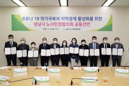 [½Åµ¿¾Æ¹æ¼Û=¹Ú´ë¿µ ±âÀÚ ] ¼º³²½Ã ³ë»ç¹ÎÁ¤ÇùÀÇȸ(À§¿øÀå Àº¼ö¹Ì ¼º³²½ÃÀå)´Â 5¿ù 12ÀÏ ¿ÀÈÄ 2½Ã ½Ãû 2Ãþ ȸÀǽǿ¡¼­ Äڷγª19 °æÁ¦ À§±â ±Øº¹°ú °í¿ë¾ÈÁ¤À» À§ÇÑ °øµ¿¼±¾ð¹®À» ¹ßÇ¥Çß´Ù. À̳¯ ¼±¾ð¿¡´Â Àº¼ö¹Ì ¼º³²½ÃÀå°ú ¹ÚÀμö Çѱ¹³ëÃÑ ¼º³²Áö¿ªÁöºÎ ¼ö¼®ºÎÀ§¿ø¡¦