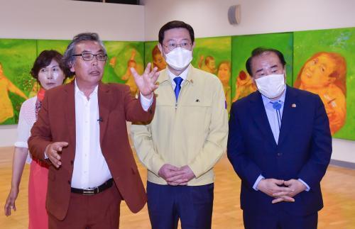 [½Åµ¿¾Æ¹æ¼Û=°­¼º´ë ±âÀÚ] À̿뼷 ±¤ÁÖ±¤¿ª½ÃÀåÀÌ 14ÀÏ ¿ÀÀü µ¿±¸ ±¹¸³¾Æ½Ã¾Æ¹®È­Àü´ç ¹®È­Ã¢Á¶¿ø º¹ÇÕ5°ü¿¡¼­ 5¡¤18¹ÎÁÖÈ­¿îµ¿ Á¦40Áֳ⠱â³ä Ưº°ÀüÀ¸·Î ¸¶·ÃµÈ 5¡¤18½Ã¹Î±º Ãâ½Å ±è±ÙÅ ÀÛ°¡ÀÇ '¿À¿ù, º°ÀÌ µÈ µé²É' Àü½Ãȸ¿¡ Âü¼®ÇØ ÀÛǰÀ» °ü¶÷Çϰí ÀÖ´Ù.