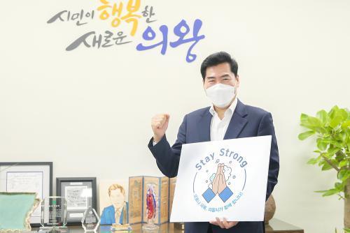 [½Åµ¿¾Æ¹æ¼Û=±¸µ¿Çö ±âÀÚ] ±è»óµ· ÀǿսÃÀåÀÌ 29ÀÏ Äڷγª19 À§±â¸¦ ÇÔ²² À̰ܳ»ÀÚ´Â ¿Ü±³ºÎ ÁÖ°ü ¡®½ºÅ×ÀÌ ½ºÆ®·Õ(Stay Strong)¡¯ Ä·ÆäÀο¡ µ¿ÂüÇß´Ù. ½ºÅ×ÀÌ ½ºÆ®·Õ Ä·ÆäÀÎÀº µÎ ¼ÕÀ» ¸ð¾Æ ±âµµÇÏ´Â ±×¸²°ú ºñ´©°ÅǰÀ¸·Î ¼ÕÀ» ¾Ä´Â ·Î°í¿¡ ¡®Stay Strong¡¯À̶õ ¹®±¸¡¦