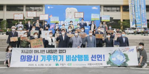 [½Åµ¿¾Æ¹æ¼Û=±¸µ¿Çö ±âÀÚ] ¡®Á¦25ȸ ȯ°æÀÇ ³¯¡¯À» ±â³äÇÏ¿© Àǿսà ±è»óµ·½ÃÀå, ÀǿսÃÀÇȸ À±¹Ì±ÙÀÇÀå, ÀǿսÃÁö¼Ó°¡´É¹ßÀüÇùÀÇȸ ÀÌdzȣ »óÀÓȸÀåÀ» ºñ·ÔÇÑ 27°³ ½Ã¹Î´Üü´Â 4ÀÏ ½Ãû º»°ü ¾Õ¿¡¼­¡®Àǿսà ±âÈÄÀ§±â ºñ»óÇൿ¡¯À» °ø½Ä ¼±¾ðÇß´Ù. ¼±¾ð¹®¿¡´Â "Çϳª¡¦