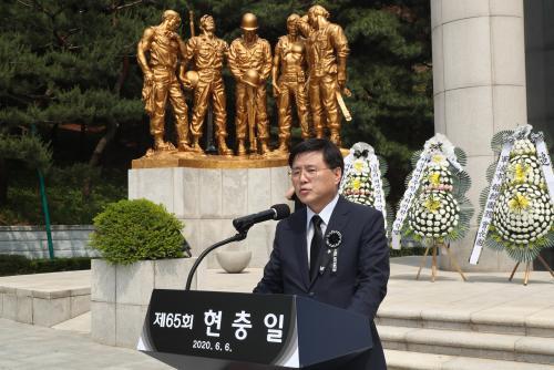 [½Åµ¿¾Æ¹æ¼Û=±¸µ¿Çö ±âÀÚ] ±ºÆ÷½Ã´Â 6¿ù 6ÀÏ ÇÑ¾ó°ø¿ø³» ÇöÃæÅ¾¿¡¼­ ÇÑ´ëÈñ ±ºÆ÷½ÃÀå°ú 50¿©¸íÀÌ Âü¼®ÇÑ °¡¿îµ¥ Á¦65ȸ ÇöÃæÀÏ Ãß³ä½ÄÀ» °³ÃÖÇϰí, ¼ø±¹¼±¿­°ú È£±¹¿µ·ÉµéÀÇ ³ÌÀ» ±â·È´Ù. À̳¯ ÇÑ´ëÈñ ½ÃÀåÀº Ãß³ä»ç¸¦ ÅëÇØ, ¡°¼ø±¹¼±¿­µéÀÇ ¼þ°íÇÑ ¾Ö±¹Á¤½ÅÀ» ±Í¡¦