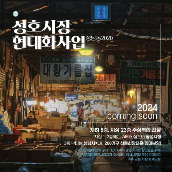 [½Åµ¿¾Æ¹æ¼Û ¹Ú´ë¿µ ±âÀÚ] ¼º³²½Ã Áß¿ø±¸ ¼º³²µ¿ 2020¹øÁö ÀÏ´ë¿¡ ÀÖ´Â ¼ºÈ£½ÃÀåÀÌ ¿À´Â 2024³â ¸» ½ÅÈ¥ºÎºÎ ƯȭÇü °ø°øÁÖÅÃÀÌ ÀÖ´Â ÁÖ»óº¹Çհǹ°·Î Å»¹Ù²ÞÇÑ´Ù. Âø°ø ½Ã±â´Â ¿À´Â 2022³â »ó¹Ý±â´Ù. ¼º³²½Ã´Â 6¿ù 17ÀÏ ¿ÀÈÄ 2½Ã ½ÃÀå Áý¹«½Ç¿¡¼­ Àº¼ö¹Ì ¼º³²½ÃÀå°ú ¡¦