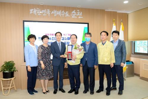 [½Åµ¿¾Æ¹æ¼Û=±è¿ëÈÆ ±âÀÚ] ¼øÃµ½Ã´Â Áö³­ 15ÀÏ¡®¼¼°è ÇåÇ÷ÀÚÀÇ ³¯¡¯À» ¸Â¾Æ ´ëÇÑÀû½ÊÀÚ»ç·ÎºÎÅÍ ¿ì¼ö ÁöÀÚü·Î ¼±Á¤µÇ¾î °¨»çÆÐ¸¦ ¹Þ¾Ò´Ù ¡®¼¼°è ÇåÇ÷ÀÚÀÇ ³¯¡¯Àº ¸Å³â 6¿ù 14ÀÏ·Î ÇåÇ÷ÀÇ Á߿伺À» ÀüÇϰí ÇåÇ÷ÀÚ¿¡°Ô °¨»çÇϱâ À§ÇØ ±¹Á¦Àû½ÊÀڻ翬¸Í, ¼¼°èº¸°Ç±â±¸,¡¦
