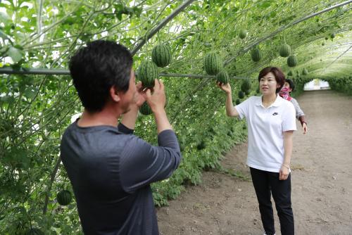 [½Åµ¿¾Æ¹æ¼Û=°­¼º´ë ±âÀÚ] 2ÀÏ Àü³² º¸¼º±º µæ·®¸é ÇØÆò¸® ¾ÖÇà ¼ö¹Ú ³ó°¡¿¡ ÃâÇϸ¦ ¾ÕµÐ ¾ÖÇà ¼ö¹ÚÀÌ ÁÖ··ÁÖ·· ¿­·ÁÀÖ´Ù. ¾ÖÇüö¹ÚÀº ÀÏ¹Ý ¼ö¹Ú¿¡ ºñÇØ Å©±â°¡ 4ºÐÀÇ 1 ¼öÁØÀ̸ç, ²®ÁúÀÌ »ç°úó·³ ¾ã°í ´çµµ°¡ ³ô¾Æ 1~2ÀÎ °¡±¸¸¦ °Ü³ÉÇÑ ½Å°³³ä ¼ö¹ÚÀÌ´Ù.