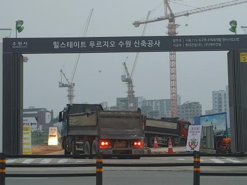 [½Åµ¿¾Æ¹æ¼Û=±¸µ¿Çö ±âÀÚ] ¼ö¿ø½Ã ÆÈ´Þ±¸ ±³µ¿ 41-115¹øÁö ÀÏ´ëÀÇ Çö´ë°Ç¼³(ÁÖ), (ÁÖ)´ë¿ì°Ç¼³¿¡¼­ ½Ã°øÇÏ´Â Èú½ºÅ×ÀÌÆ® Ǫ¸£Áö¿À ¼ö¿ø ¾ÆÆÄÆ® ½ÅÃà°ø»ç °Ç¼³ÇöÀå ¾Õ¿¡¼­ ¼ÒÀ½°ú ºÐÁøÀ¸·Î ÀÎÇÑ ¹Î¿ø ¶§¹®¿¡ ½ÃÀ§°¡ À̾îÁö°í ÀÖ´Ù. dz¸²¾ÆÀÌ¿ø ¾ÆÆÄÆ® ÀÔÁÖȸÀÇ ´ëÇ¥ÀÚ È¸¡¦