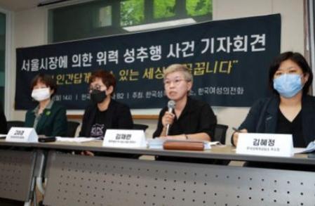 [½Åµ¿¾Æ¹æ¼Û=±Çº´Âù ±âÀÚ] »ç¸ÁÇÑ ¹Ú¿ø¼ø ¼­¿ï½ÃÀåÀ¸·ÎºÎÅÍ ¼ºÃßÇà µîÀ» ´çÇÑ ÇÇÇØ È£¼ÒÀÎ Ãø °ü°èÀÚµéÀº 13ÀÏ ¿ÀÈÄ ¼­¿ï ÀºÆò±¸ Çѱ¹¿©¼ºÀÇÀüÈ­ »ç¹«½Ç¿¡¼­ ±âÀÚȸ°ßÀ» °¡Á³´Ù. À̵éÀÌ Æø·ÎÇÑ ³»¿ëÀº Ãæ°Ý, °æ¾Ç ±× ÀÚü¿´´Ù. Çѱ¹¿©¼ºÀÇÀüÈ­¡¤Çѱ¹¼ºÆø·Â»ó´ã¼Ò °ü¡¦