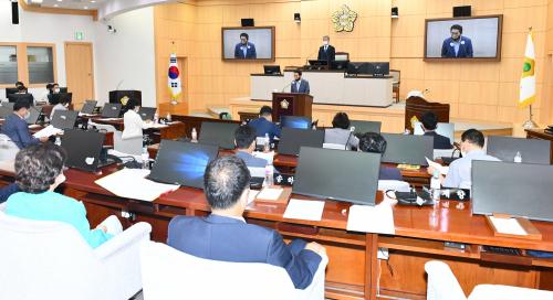 [½Åµ¿¾Æ¹æ¼Û=±è±â³² ±âÀÚ] ¿©¼ö½ÃÀÇȸ(ÀÇÀå Àüâ°ï)°¡ 24ÀÏ ¿ÃÇØ 5¹øÂ° ÀüüÀÇ¿ø °£´ãȸ¸¦ ¿­¾î À¯¿£±âÈĺ¯È­Çù¾à ´ç»ç±¹ÃÑȸ(COP28)À¯Ä¡ µî ÁÖ¿ä ¾È°Ç¿¡ ´ëÇÑ ¼ÒÅëÀ» À̾´Ù. À̹ø ÀüüÀÇ¿ø °£´ãȸ´Â »çȸÀû °Å¸®µÎ±â 2´Ü°è°¡ Àü±¹À¸·Î È®´ëµÊ¿¡ µû¶ó ¼ÒȸÀǽǿ¡¡¦