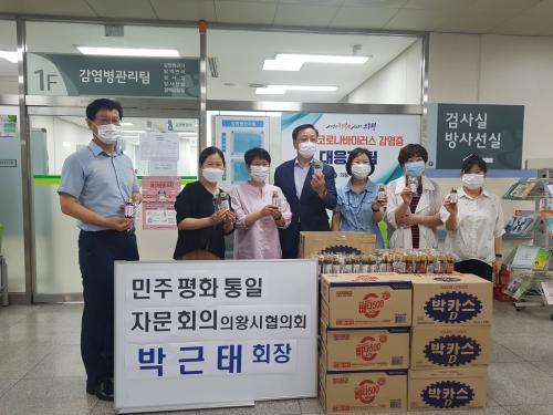 [½Åµ¿¾Æ¹æ¼Û=±¸µ¿Çö ±âÀÚ] ¹ÎÁÖÆòÈ­ÅëÀÏÀÚ¹®È¸ÀÇ ÀǿսÃÇùÀÇȸ¿¡¼­ Áö³­ 26ÀÏ Äڷγª·Î ÁöÄ£ º¸°Ç¼Ò ÀÇ·áÁø°ú Á÷¿øÀ» °Ý·ÁÇϰíÀÚ Àǿսú¸°Ç¼Ò¸¦ ¹æ¹®ÇØ °Ç°­À½·á¸¦ Àü´ÞÇß´Ù. ¹Ú±ÙÅ ¹ÎÁÖÆòÈ­ÅëÀÏÀÚ¹®È¸ÀÇ ÀǿսÃÇùÀÇȸ ȸÀåÀº¡°ÀǿսùεéÀÌ Äڷγª·ÎºÎÅÍ ¾ÈÀüÇÑ »ý¡¦