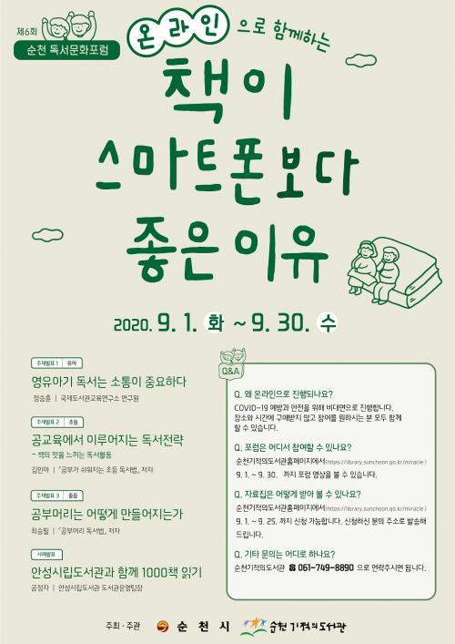 [½Åµ¿¾Æ¹æ¼Û=±è¿ëÈÆ ±âÀÚ] ¼øÃµ±âÀûÀǵµ¼­°ü¿¡¼­´Â ¿À´Â 9¿ù 1ÀϺÎÅÍ 30ÀϱîÁö ÇÑ ´Þ°£ ¡®Á¦6ȸ ¼øÃµ µ¶¼­¹®È­Æ÷·³¡¯À» ¿Â¶óÀÎÀ¸·Î °³ÃÖÇÑ´Ù. Æ÷·³ÀÇ ÁÖÁ¦´Â ¡®Ã¥ÀÌ ½º¸¶Æ®Æùº¸´Ù ÁÁÀº ÀÌÀ¯¡¯·Î ÀÛ³â Æ÷·³¿¡¼­ ¾î¸°ÀÌ¿Í ¼ºÀÎÀÌ Ã¥°ú ´ÜÀýµÈ °¡Àå Å« ¿øÀÎÀ¸·Î »ÌÈù °Ô¡¦
