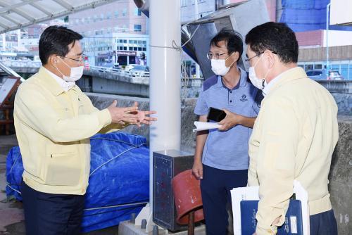 [½Åµ¿¾Æ¹æ¼Û=±è±â³² ±âÀÚ] ±Ç¿ÀºÀ ¿©¼ö½ÃÀåÀÌ 3ÀÏ ¿ÀÀü ÅÂdz ¸¶ÀÌ»èÀ¸·Î ¹Ù´Ú ÀϺΰ¡ ħ¼öµÈ ±³µ¿½ÃÀå Àϴ븦 µÑ·¯º¸¸ç ÇÇÇØÇöÀåÀ» Á¡°ËÇϰí ÀÖ´Ù. <@1> <@2>
