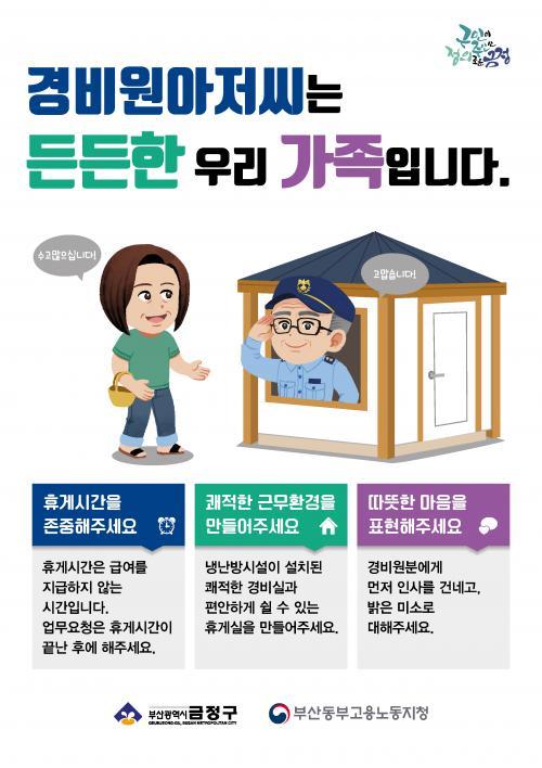 [½Åµ¿¾Æ¹æ¼Û=º¯ÀçÈ£ ±âÀÚ] ±ÝÁ¤±¸(±¸Ã»Àå Á¤¹Ì¿µ)´Â ¡¸°øµ¿ÁÖÅà °æºñ¿ø ±Ù¹«È¯°æ °³¼±»ç¾÷¡¹ÀÇ ÀÏȯÀ¸·Î ÀÔÁֹΰú °æºñ¿øÀÌ ÇÔ²² ¹è·ÁÇÏ´Â »ó»ý È«º¸¹°°ú °æºñ¿ø ÈްԽð£ Ç¥ÁØ ¾È³»¹®À» Á¦ÀÛÇÏ¿© ¹èºÎÇÑ´Ù°í 2ÀÏ ¹àÇû´Ù. Áö³­ 7¿ù ±ÝÁ¤±¸°¡ ½Ç½ÃÇÑ ¡¸°øµ¿ÁÖÅà °æºñ¿ø¡¦