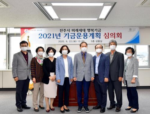 [½Åµ¿¾Æ¹æ¼Û=È«¼øÅ ±âÀÚ] ÁøÁÖ½Ã(½ÃÀå Á¶±ÔÀÏ)´Â Áö³­ 22ÀÏ ½Ãû 5Ãþ »óȲ½Ç¿¡¼­ 10¸íÀÇ ÁøÁֽà ¹Ì·¡¼¼´ë Çູ±â±Ý ±â±Ý¿î¿ë½ÉÀÇÀ§¿øÈ¸(ÀÌÇÏ¡®À§¿øÈ¸¡¯) À§¿øµéÀÌ Âü¼®ÇÑ °¡¿îµ¥ 2021³âµµ ±â±Ý¿î¿ë°èȹ ½ÉÀÇȸ¸¦ °³ÃÖÇÏ´Â µî ¹Ì·¡¼¼´ë Çູ±â±Ý 500¾ï¿ø Á¶¼º¿¡ ¹ÚÂ÷¸¦ ¡¦