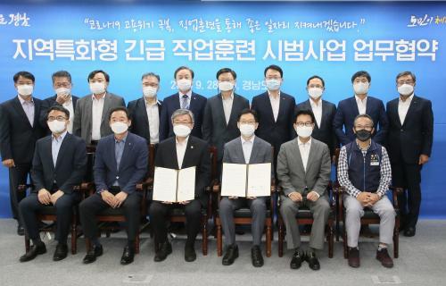 [½Åµ¿¾Æ¹æ¼Û=ÇÏÀç±Ç ±âÀÚ] °í¿ë³ëµ¿ºÎ¿Í °æ»ó³²µµ°¡ 28ÀÏ ¿ÀÈÄ °æ³²µµÃ»¿¡¼­ Àü±¹ ÃÖÃÊ·Î ¡®Áö¿ªÆ¯È­Çü ±ä±Þ Á÷¾÷ÈÆ·Ã ½Ã¹ü»ç¾÷¡¯ ÃßÁøÀ» À§ÇÑ ¾÷¹«Çù¾àÀ» ü°áÇϰí, °æ³² Áַ»ê¾÷ÀÇ ÁÁÀº ÀÏÀÚ¸®¸¦ Áö۱â À§ÇØ º»°ÝÀûÀ¸·Î ÈûÀ» ¸ð¾Æ ³ª°¡±â·Î Çß´Ù. À̳¯ Çù¾à½Ä¿¡´Â¡¦