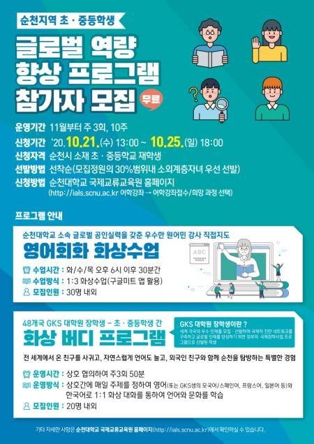 [½Åµ¿¾Æ¹æ¼Û=±è±â³² ±âÀÚ] ¼øÃµ´ëÇб³(ÃÑÀå °í¿µÁø)´Â µ¿¾Æ½Ã¾Æ ¹®È­µµ½Ã¸¦ Ç¥¹æÇÏ´Â ¼øÃµ½ÃÀÇ À§»ó Á¦°í ¹× Áö¿ª ÃÊ¡¤Áßµî ÇлýÀÇ ±Û·Î¹ú ¿ª·® °­È­¸¦ À§ÇØ, ¿ø¾î¹Î È­»ó¿µ¾î¿Í Àü ¼¼°è 48°³±¹ Á¤ºÎ ÃÊû ´ëÇпø ÀåÇлý°úÀÇ È­»ó ¹öµð ÇÁ·Î±×·¥À» ¿À´Â 11¿ùºÎÅÍ ½ÃÇàÇÒ¡¦