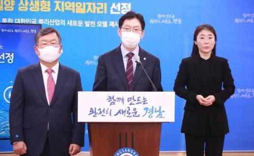 [½Åµ¿¾Æ¹æ¼Û=ÇÏÀç±Ç ±âÀÚ] °æ»ó³²µµ(µµÁö»ç ±è°æ¼ö)´Â 20ÀÏ ¡®°æ³²¹Ð¾çÇü ÀÏÀÚ¸® »ç¾÷¡¯ÀÌ Á¤ºÎÀÇ »ó»ýÇü Áö¿ªÀÏÀÚ¸®¿¡ ¼±Á¤µÆ´Ù°í ¹àÇû´Ù. »ê¾÷Åë»óÀÚ¿øºÎ(Àå°ü ¼ºÀ±¸ð)´Â À̳¯ ¿ÀÈÄ »ó»ýÇü Áö¿ªÀÏÀÚ¸® ½ÉÀÇÀ§¿øÈ¸¸¦ ¿­°í °æ³²¹Ð¾çÇü°ú °­¿øÇü ¸ðµ¨À» »ó»ýÇü Áö¿ªÀÏ¡¦