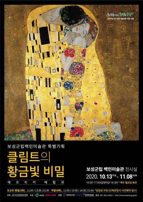 [½Åµ¿¾Æ¹æ¼Û=¹Ú±¤¿Á ±âÀÚ] º¸¼º±º ±º¸³ ¹é¹Î¹Ì¼ú°ü¿¡¼­ 10¿ù 13ÀϺÎÅÍ 11¿ù 8ÀϱîÁö Ȳ±Ý »öäÀÇ °ÅÀåÀ¸·Î ¾Ë·ÁÁø ¼¼°èÀûÀÎ È­°¡ ¡®±¸½ºÅ¸ÇÁ Ŭ¸²Æ®(1862³â~1918³â)¡¯ÀÇ ·¹ÇÁ¸®Ä« ÀÛǰÀüÀÌ ÁøÇàÁßÀÌ´Ù. À̹ø Àü½Ã´Â 2020³â Çѱ¹¹®È­¿¹¼úȸ°ü¿¬ÇÕȸ °ø¸ð»ç¾÷¡®Àü½Ã°ø°£¡¦