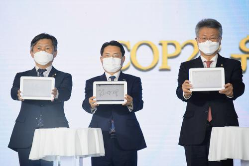 [½Åµ¿¾Æ¹æ¼Û=±è±â³² ±âÀÚ] 25ÀÏ ¿©¼ö¼¼°è¹Ú¶÷ȸÀå¿¡¼­ ¿­¸° ¡®Á¦24ȸ Àü³² µµ¹ÎÀÇ ³¯ ±â³ä½Ä¡¯¿¡¼­ COP28 ³²Çؾȳ²Áß±Ç À¯Ä¡ °áÀÇ ¼­¾à½ÄÀÌ ¿­·È´Ù. <@1> ±¹È¸ÀÇ¿ø(ÁÖöÇö¡¤±èȸÀ硤¼­µ¿¿ë¡¤À±Àç°©¡¤¼Òº´Ã¶)°ú µµ³» ÁöÀÚü, ÀÇȸ, üÀ°È¸, »çȸ´Üü, ´ë±â¾÷, ¹Î°£À§¡¦
