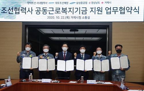 [½Åµ¿¾Æ¹æ¼Û´º½º=ÃÖ°¡À» ±âÀÚ] °æ³²µµ´Â Áö³­ 22ÀÏ °ÅÁ¦½Ãû¿¡¼­ Á¶¼±¾÷ °øµ¿À§±â ±Øº¹°ú ´ëÇüÁ¶¼±¼Ò¿Í »ç³» Çù·Â»çÀÇ »ó»ýÀ» À§ÇÑ Á¶¼±¾÷ °øµ¿±Ù·Îº¹Áö±â±Ý Áö¿ø ¾÷¹« Çù¾àÀ» ü°áÇß½À´Ï´Ù. À̳¯ ¾÷¹«Çù¾àÀº °æ»ó³²µµ, °ÅÁ¦½Ã, ´ë¿ìÁ¶¼±Çؾç, »ï¼ºÁß°ø¾÷, ´ë¿ìÁ¶¼±¡¦