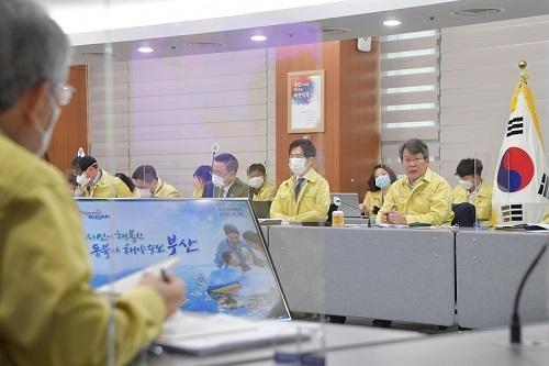[½Åµ¿¾Æ¹æ¼Û´º½º=Ç㳪¿µ ±âÀÚ] ºÎ»ê½Ã°¡ 10¿ù ¸¶Áö¸· ÁÖ ÁÖ°£Á¤Ã¥È¸ÀǸ¦ °³ÃÖÇß½À´Ï´Ù. ÀÌ ÀÚ¸®¿¡¼­ º¯¼º¿Ï ºÎ»ê½ÃÀå ±ÇÇÑ´ëÇàÀº ºÎ»êÀÇ Äڷγª19¿Í °æÁ¦ À§±â »óȲÀÌ ¿©ÀüÈ÷ ÇöÀçÁøÇàÇüÀÓÀ» ÀÎÁöÇÏ°í ´ëÀÀ¿¡ ¸¸ÀüÀ» ±âÇÒ °ÍÀ» ´çºÎÇß½À´Ï´Ù. ƯÈ÷ ºÎ»ê ´ë°³Á¶ ¡¦