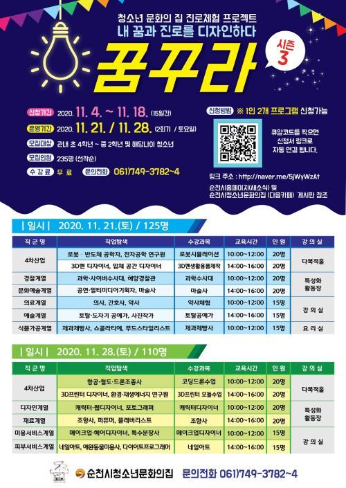 [½Åµ¿¾Æ¹æ¼Û=±è¿ëÈÆ ±âÀÚ] ¼øÃµ½Ã û¼Ò³â¹®È­ÀÇ Áý¿¡¼­´Â û¼Ò³â Áø·Î¡¤Á÷¾÷üÇè ÇÁ·Î±×·¥ Âü°¡ÀÚ¸¦ ¿À´Â 18ÀϱîÁö ¼±Âø¼øÀ¸·Î ¸ðÁýÇÑ´Ù. À̹ø û¼Ò³â¹®È­ÀÇ Áý ÇÁ·Î±×·¥Àº Áø·Î¡¤Á÷¾÷üÇèÀ» ÅëÇØ ÀÚ½ÅÀÇ ²ÞÀ» ã°í, Á÷¾÷°ú Áø·Î¿¡ ´ëÇÑ ÀÌÇØÀÇ ÆøÀ» ³ÐÈú ¼ö ÀÖ´Â ÇÁ¡¦