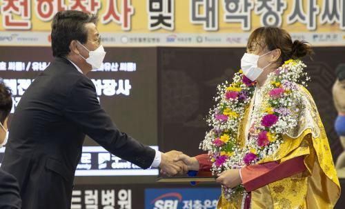 [½Åµ¿¾Æ¹æ¼Û=À±¼ºÁÖ ±âÀÚ] 7ÀÏ ±è¼øÈ£ ±¸·Ê±º¼ö°¡ ±¸·Ê½Ç³»Ã¼À°°ü¿¡¼­ °³ÃÖµÈ Á¦12ȸ ±¸·ÊÀü±¹¿©ÀÚõÇÏÀå»ç ¹× ´ëÇÐÀå»ç¾¾¸§´ëȸ¿¡¼­ ¿©ÀÚ¾¾¸§ ±¹È­±Þ¿¡ Àå»ç·Î µî±ØÇÑ ¾öÈ­Áø(±¸·Ê±ºÃ» ¼Ò¼Ó)¼±¼ö¿¡°Ô ²É´Ù¹ß°ú ¿ì½Â Æ®·ÎÇǸ¦ Àü´ÞÇÏ°í ±â³äÃÔ¿µÀ» ÇÏ¿´´Ù.