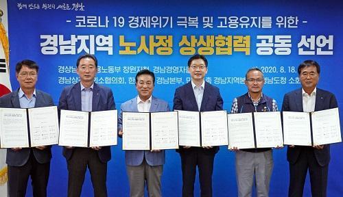 [½Åµ¿¾Æ¹æ¼Û=ÇÏÀç±Ç ±âÀÚ] °æ»ó³²µµ(µµÁö»ç ±è°æ¼ö)´Â Áö³­ 8¿ù 18ÀÏ¿¡ ±¤¿ª ´ÜÀ§·Î´Â Àü±¹¿¡¼­ óÀ½À¸·Î ¾ç´ë ³ëÃÑÀÌ Âü¼®ÇÏ´Â ³ë»çÁ¤ »ó»ýÇù·Â °øµ¿¼±¾ðÀ» ÇÏ¿´´Ù. ³ë»çÁ¤Àº Äڷγª19¿¡ µû¸¥ °í¿ë Ãæ°Ý¿¡ ´ëÀÀÇϰí ÀÏÀÚ¸®¸¦ ÁöÄѳ¾ ´ëÃ¥ÀÇ Çʿ伺À» ÀνÄÇϰí, °íÅ롦