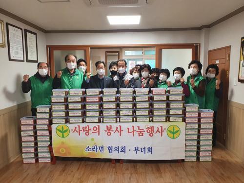 [½Åµ¿¾Æ¹æ¼Û=±è±â³² ±âÀÚ] Áö³­ 19ÀÏ ¿©¼ö½Ã ¼Ò¶ó¸é »õ¸¶À»È¸(ȸÀå ·ùÇü¿­)´Â ´ö¾ç3¸® ¸¶À»È¸°ü¿¡¼­ »ç¶ûÀÇ °íÃßÀå ³ª´® Çà»ç¸¦ Çß´Ù. À̳¯ ȸ¿ø 30¿© ¸íÀº °íÃßÀå 100ÅëÀ» ´ã¾Æ °ü³» °æ·Î´ç°ú Ãë¾à°èÃþ¼¼´ë µî¿¡ Àü´ÞÇß´Ù. ·ùÇü¿­ ȸÀåÀº ¡°Äڷγª19·Î ¾î·Á¿òÀ»¡¦