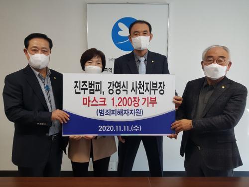 [½Åµ¿¾Æ¹æ¼Û=È«¼øÅ ±âÀÚ] ÁøÁÖÁö¿ª¹üÁËÇÇÇØÀÚÁö¿ø¼¾ÅÍ µîºÒ »çõÁöºÎ °­¿µ½Ä ÁöºÎÀåÀº Áö³­ 11ÀÏ ¹üÁËÇÇÇØÀڵ鿡°Ô Àü´ÞÇØ´Þ¶ó¸ç µîºÒ¿¡ º¸°Ç¿ë ¸¶½ºÅ©(KF94) 1,200ÀåÀ» ±âºÎÇß´Ù. À̳¯ ±âºÎÇà»ç¿¡´Â À¯Ã¢È¿ ÀÌ»çÀå, À庴õ À§¿øÀå, °­¿µ½Ä ÁöºÎÀå, À±¼øÁ¤ °£»ç µîÀÌ¡¦