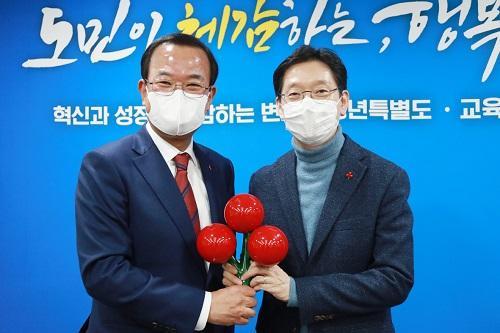 [½Åµ¿¾Æ¹æ¼Û´º½º=À±Çý¸² ±âÀÚ] °æ³²µµ¿Í (ÁÖ)Çѱ¹Ç×°ø¿ìÁÖ»ê¾÷°ú °æ³²»çȸº¹Áö°øµ¿¸ð±Ýȸ°¡ ¿¬¸»¿¬½Ã¸¦ ¸Â¾Æ »ç¶ûÀÇ ¿­¸Å ´Þ±â µî ³ª´®¹®È­ È®»êÀ» À§ÇÑ Çà»ç¸¦ °³ÃÖÇß½À´Ï´Ù. Çà»ç¿¡´Â ±è°æ¼ö °æ³²µµÁö»ç¿Í ¾ÈÇöÈ£ KAI »çÀå, °­±âö °æ³²»çȸº¹Áö°øµ¿¸ð±ÝȸÀåÀÌ Âü¼®¡¦