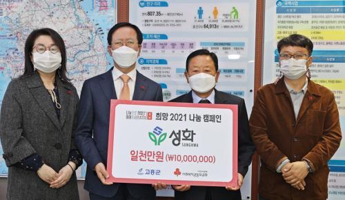 [½Åµ¿¾Æ¹æ¼Û=¹Ú±¤¿Á ±âÀÚ] °íÈﱺ(±º¼ö ¼Û±Í±Ù)Àº 12¿ù 2ÀÏ ¢ß¼ºÈ­(ȸÀå ¼Û¿¬¼·)¿¡¼­ ¼º±Ý 1õ¸¸¿øÀ» ±âŹÇß´Ù°í ¹àÇû´Ù. ¢ß¼ºÈ­´Â º¸¼º±º ¹ú±³À¾¿¡ ¼ÒÀçÇÑ »óÅä, ¾ßÀÚ¼ö ¸ÅÆ® µî Á¦Á¶¾÷ü·Î ¢ß¼ºÈ­ ¼Û¿¬¼· ȸÀå, ¼Û±Í±Ù °íÈﱺ¼ö, ¹Ú¹Ì¶û °íÈﱺ°¡Á·¼¾ÅÍÀåÀÌ Âü¼®ÇÑ¡¦