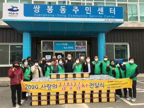 [½Åµ¿¾Æ¹æ¼Û=±è±â³² ±âÀÚ] Çѱ¹¹Ù½ºÇÁ(ÁÖ) ¿©¼ö°øÀå(°øÀåÀå ÀÌ¿î½Å)¿¡¼­´Â Áö³­ 2ÀÏ ±èÀåöÀ» ¸Â¾Æ ¾î·Á¿î ¼¼´ëÀÇ °æÁ¦Àû ºÎ´ãÀ» ´ú°í ÀÌ¿ô °£ µû¶æÇÑ Á¤À» ³ª´©±â À§ÇØ 5kg ±èÀå±èÄ¡ 200¹Ú½º(9¹é¸¸ ¿ø »ó´ç)¸¦ ½ÖºÀµ¿ºÎ³àȸ(ȸÀå ¼­»ï½É)¿¡ Àü´ÞÇß´Ù. Çѱ¹¹Ù½ºÇÁ(ÁÖ¡¦
