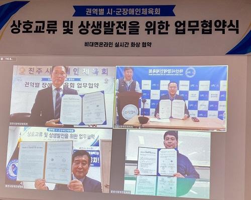 [½Åµ¿¾Æ¹æ¼Û=°­¿µÈÆ ±âÀÚ] ÁøÁֽà Àå¾ÖÀΠüÀ°È¸(ȸÀå Á¶±ÔÀÏ ÁøÁÖ½ÃÀå)´Â Áö³­ 9ÀÏ ÁøÁֽà Àå¾ÖÀΠüÀ°È¸ ȸÀǽǿ¡¼­ Àå¾ÖÀΠüÀ°½Ã¼³ °Ç¸³ ¿¹Á¤ÀÎ ±Ç¿ªº° ½Ã Àå¾ÖÀΠüÀ°È¸¿Í ¾÷¹«Çù¾àÀ» ü°áÇß´Ù. À̳¯ Çù¾à½ÄÀº Äڷγª19 È®»ê ¹æÁö¸¦ À§ÇØ °¢ ȸÀǽǿ¡¼­ ºñ´ë¸é ¡¦