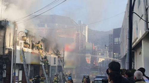 [½Åµ¿¾Æ¹æ¼Û=Ç㳪¿µ ±âÀÚ] 16ÀÏ ¿ÀÈÄ °æ³² ¾ç»ê½Ã ºÏºÎµ¿ 2Ãþ Â¥¸® »ó°¡ 2Ãþ¿¡¼­ ºÒÀ̳ª ¼Ò¹æ´ë¿øµéÀÌ »ç´Ù¸®¸¦ Ÿ°í È­Àç Áø¾ÐÀ» À§ÇØ ÇöÀåÀ¸·Î ÅõÀԵǰí ÀÖ´Ù.