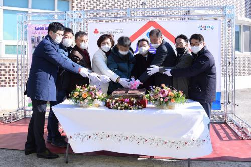 [½Åµ¿¾Æ¹æ¼Û=±è±â³² ±âÀÚ] ¿©¼ö½Ã(½ÃÀå ±Ç¿ÀºÀ)´Â Àú¼Òµæ º¹ÁöÀ§±â°¡±¸ÀÇ ÁÖ°Åȯ°æ°³¼±À» À§ÇØ ·Ôµ¥ÄɹÌÄ®(°øÀåÀå ±è±â¼ø)°ú ÇÔ²² ¡®Èñ¸ÁÇϿ콺 16È£¡¯¸¦ ÁذøÇϰí 16ÀÏ ÇöÆÇ½ÄÀ» °¡Á³´Ù. À̳¯ Çà»ç´Â ±Ç¿ÀºÀ ¿©¼ö½ÃÀå°ú ·Ôµ¥ÄɹÌÄ® ±è±â¼ø °øÀåÀå, ±èÁø¿ì ¿©¼ö½Ã³ëÀΡ¦