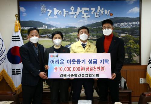 [½Åµ¿¾Æ¹æ¼Û=¼ÛÇöÁÖ ±âÀÚ] ±èÇØ½ÃÁ¾ÇհǼ³¾÷ÇùÀÇȸ(ȸÀå °­µ¿±¹)¿¡¼­ Áö³­ 29ÀÏ ±èÇØ½Ã¸¦ ¹æ¹®ÇÏ¿© ¾î·Á¿î ÀÌ¿ô¿¡°Ô Àü´ÞÇØ ´Þ¶ó¸ç ¼º±Ý 1,000¸¸¿øÀ» ±èÇØ½Ã¿¡ ±âŹÇÏ¿´´Ù. À̳¯ ±âŹµÈ ¼º±ÝÀº °ü³» Àú¼Òµæ °èÃþ¿¡ Áö¿øµÉ ¿¹Á¤ÀÌ´Ù. ±èÇØ½ÃÁ¾ÇհǼ³¾÷ÇùÀÇȸ´Â 20¡¦