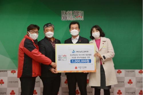 [½Åµ¿¾Æ¹æ¼Û=Ç㳪¿µ ±âÀÚ] °æ³²±³À°Ã»Àº ÀλçÇõ½Å ¿ì¼ö»ç·Ê Æ÷»ó±ÝÀ¸·Î ¹ÞÀº 100¸¸ ¿øÀ» °æ³²»çȸº¹Áö°øµ¿¸ð±Ýȸ¿¡ ±âºÎÇß´Ù°í 30ÀÏ ¹àÇû´Ù. ±âºÎÇÑ Æ÷»ó±ÝÀº Áö¿ª»çȸ û¼Ò³âµéÀ» À§ÇÑ º¹Áö»ç¾÷¿¡ »ç¿ëµÉ ¿¹Á¤ÀÌ´Ù. °æ³²±³À°Ã»Àº ÀλçÇõ½Åó¿¡¼­ ÁÖ°üÇÑ '2020³â¡¦