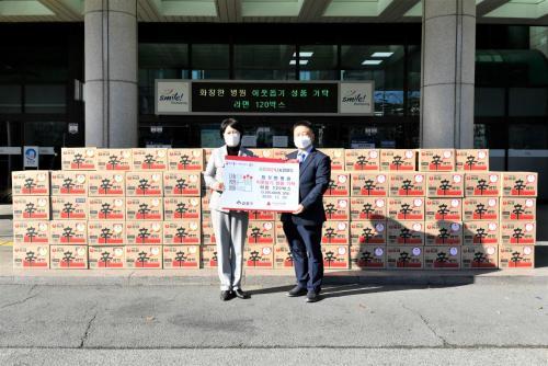 [½Åµ¿¾Æ¹æ¼Û=º¯ÀçÈ£ ±âÀÚ] ºÎ»ê ±ÝÁ¤±¸(±¸Ã»Àå Á¤¹Ì¿µ) ¼ÒÀç È­»óÀü¹®º´¿øÀΠȭâÇѺ´¿ø(º´¿øÀå ÃÖµ¿ÈÖ)Àº ¿¬¸»¿¬½Ã¸¦ ¸Â¾Æ Áö³­´Þ 30ÀÏ ±ÝÁ¤±¸¿¡ ¶ó¸é(40°³ÀÔ) 120¹Ú½º(300¸¸ ¿ø »ó´ç)¸¦ ±âŹÇß´Ù. ±âŹµÈ ¼ºÇ°Àº Àú¼Òµæ Ãë¾à°èÃþ 120¼¼´ë¿¡ Àü´ÞµÉ ¿¹Á¤ÀÌ´Ù.