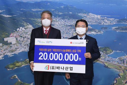 [½Åµ¿¾Æ¹æ¼Û=±è±â³² ±âÀÚ] (À¯)¹Ù³ª»ê¾÷(ȸÀå ÇÏÁøÈ£)´Â ¡®Èñ¸Á2021³ª´®Ä·ÆäÀΡ¯ ±â°£ ÀÌ¿ô»ç¶û ³ª´®À» ½ÇõÇϰíÀÚ ¼º±Ý 2000¸¸ ¿øÀ» ¸¶·ÃÇØ ¿©¼ö½Ã¿¡ Àü´ÞÇß´Ù. À̹ø ¼º±ÝÀº Àü³²»çȸº¹Áö°øµ¿¸ð±Ýȸ¸¦ ÅëÇØ ÁöÁ¤±âŹ µÇ¸ç, °ü³» Àú¼Òµæ °¡Á¤ ¹× »çȸº¹Áö½Ã¼³ µî »ýȰ¡¦