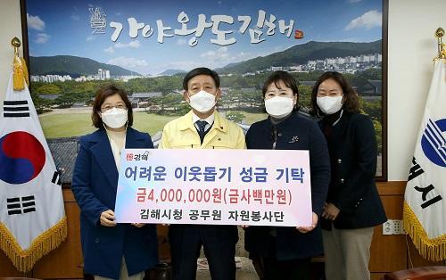 [½Åµ¿¾Æ¹æ¼Û´º½º=ÀÌÇýºó ±âÀÚ] Áö³­ 30ÀÏ ±èÇØ½Ãû °ø¹«¿ø ÀÚ¿øºÀ»ç´Ü¿¡¼­ ±èÇØ½Ã¿¡ ¿¬¸»À» ¸ÂÀÌÇÏ¿© ¾î·Á¿î ÀÌ¿ôµéÀ» À§ÇØ »ç¿ëÇØ ´Þ¶ó¸ç ÀÌ¿ôµ½±â ¼º±Ý 400¸¸¿øÀ» ±âŹÇß½À´Ï´Ù. À̳¯ ±âŹµÈ ¼º±ÝÀº °ü³» »çȸº¹Áö½Ã¼³ 4°³¼Ò¿¡ Áö¿øµÉ ¿¹Á¤ÀÔ´Ï´Ù. ±èÇØ½Ãû °ø¹«¡¦